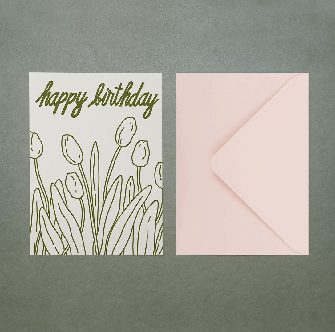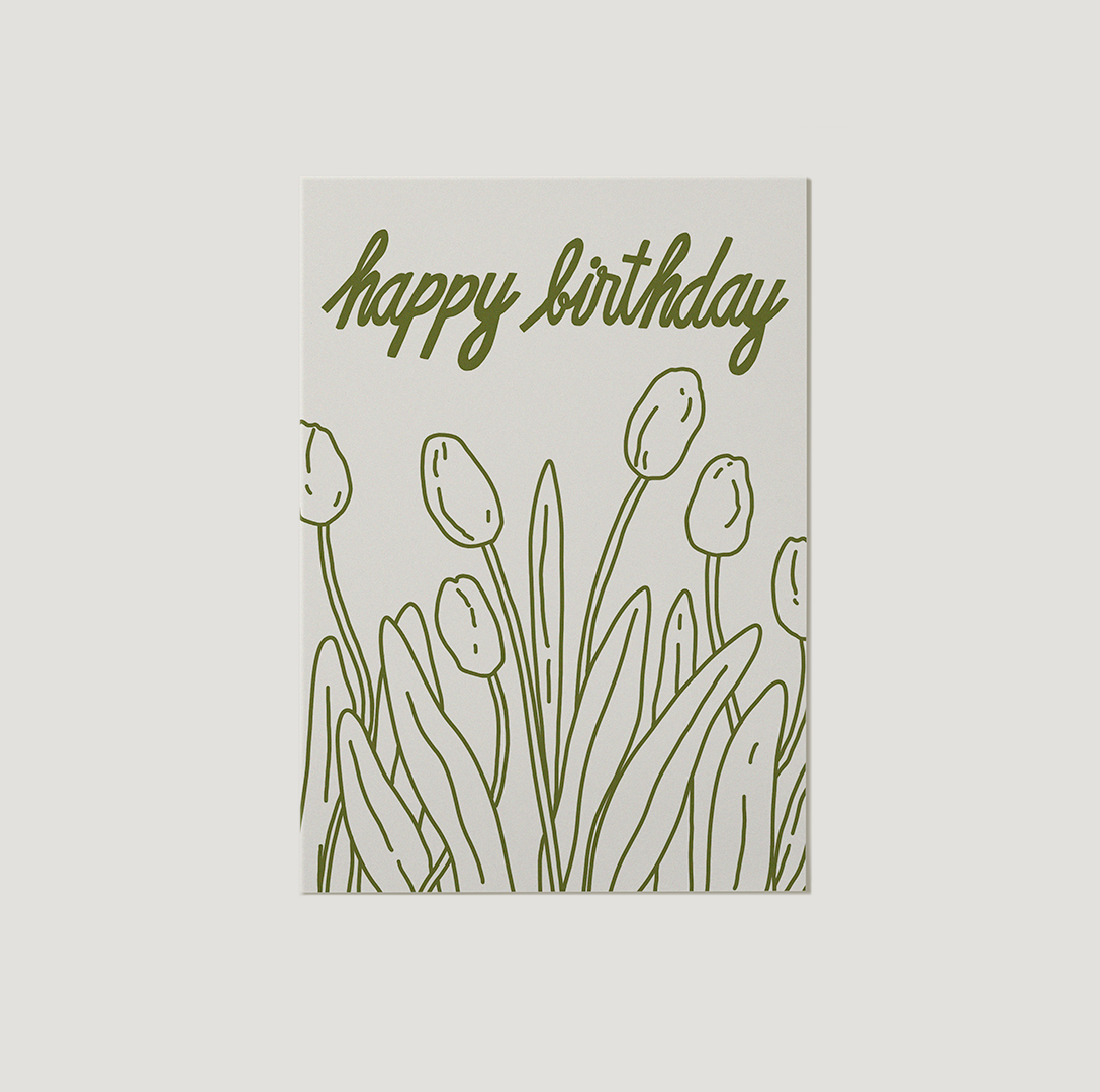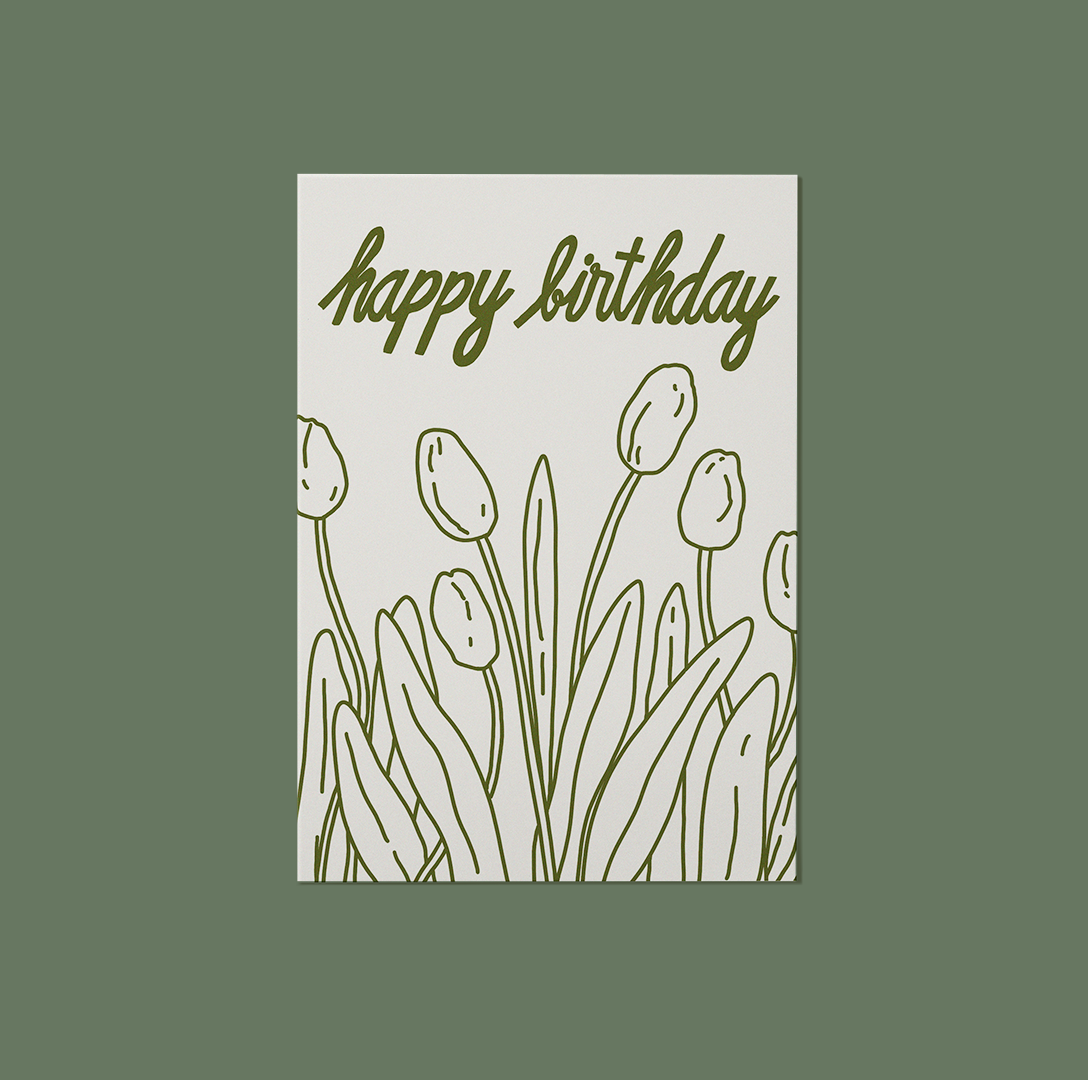 Happy Birthday Green Flowers Greeting/Birthday Card